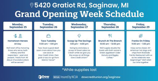 Please visit dowcreditunion.org/saginaw for more information about these events.